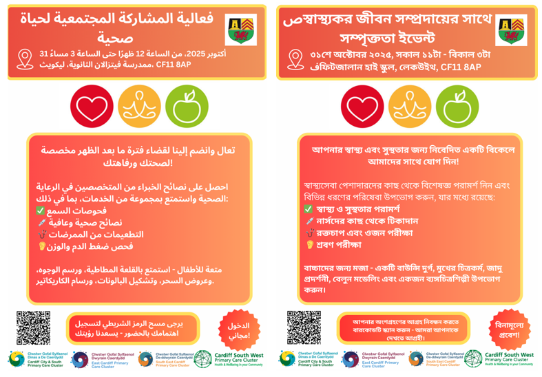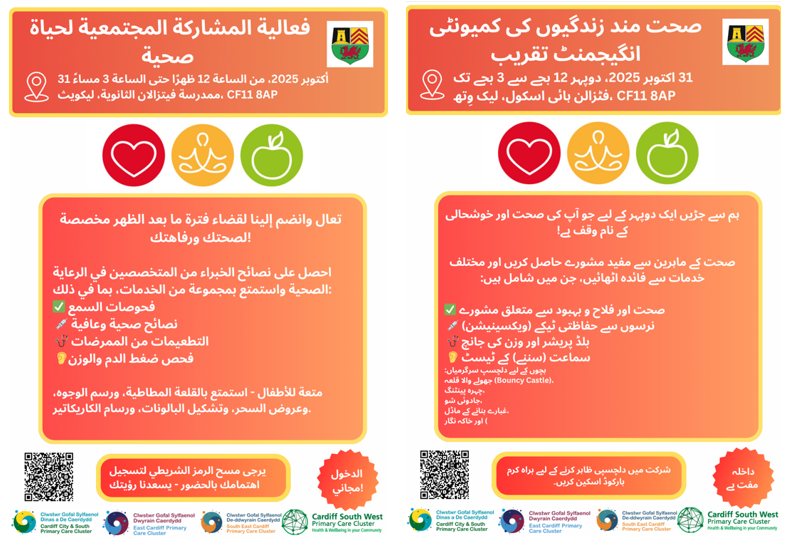 Website: www.cardiffhubs.co.uk/wellbeing-support-service / www.volunteercardiff.co.uk / www.cardiffhubs.co.uk/events
